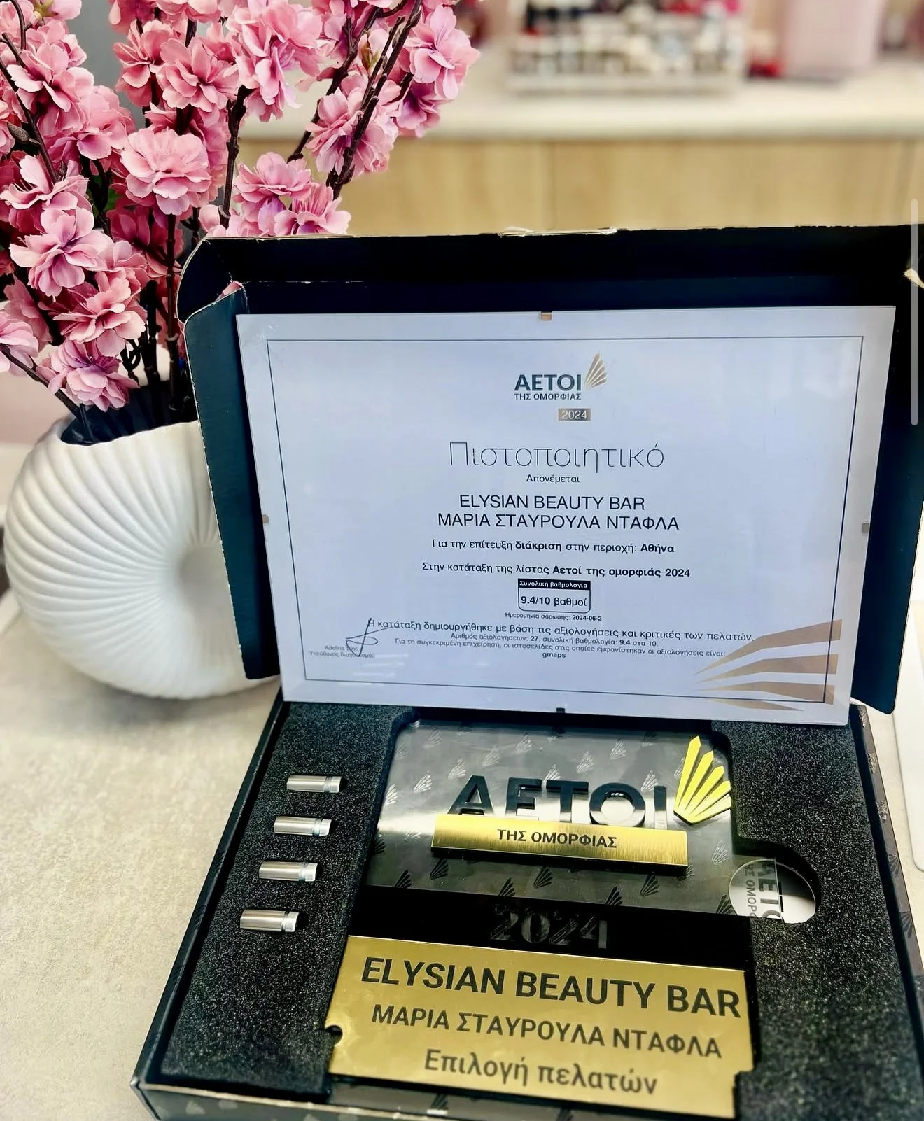 Καλωσήρθες στο Elysian Beauty Bar, το απόλυτο σημείο ομορφιάς στο Νέο Ψυχικό! Εδώ η φροντίδα συναντά την αισθητική, και κάθε λεπτομέρεια γίνεται τέχνη. Στο Elysian εξειδικευόμαστε στην περιποίηση νυχιών (manicure, pedicure, ημιμόνιμο και nail art) με στυλ και φαντασία. Στην τοποθέτηση βλεφαρίδων για φυσικό ή εντυπωσιακό αποτέλεσμα, πάντα με ασφάλεια και ακρίβεια. Σε έναν κομψό, φιλόξενο χώρο, αφιερωμένο στην ομορφιά και την χαλάρωση, φροντίζουμε κάθε επισκέπτρια να νιώθει ξεχωριστή. Γιατί στο Elysian Beauty Bar, η ομορφιά είναι εμπειρία όχι απλώς υπηρεσία.